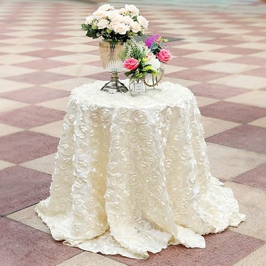 Amazon Com Fanqisi Ivory Rosette Tablecloth 120 Inches Round 3d
