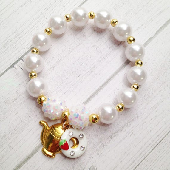 4 Fancy Tea Party Birthday Favor Bracelets 6 5 Pearl Etsy