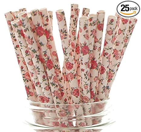 Amazon Com Pink Wedding Party Floral Straws 25 Pack Pink