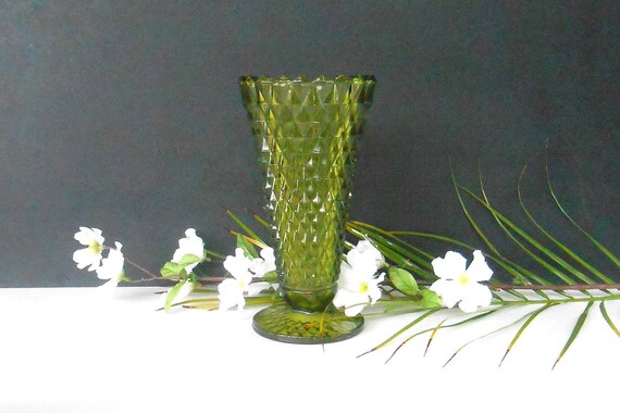 Vintage Green Glass Flower Vasepedestal Green Vase Etsy