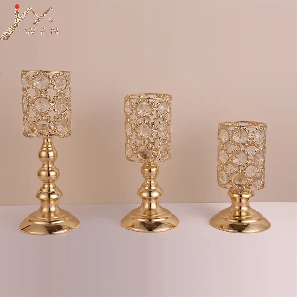 Crystals Candle Holders Metal Golden Wedding Candelabra