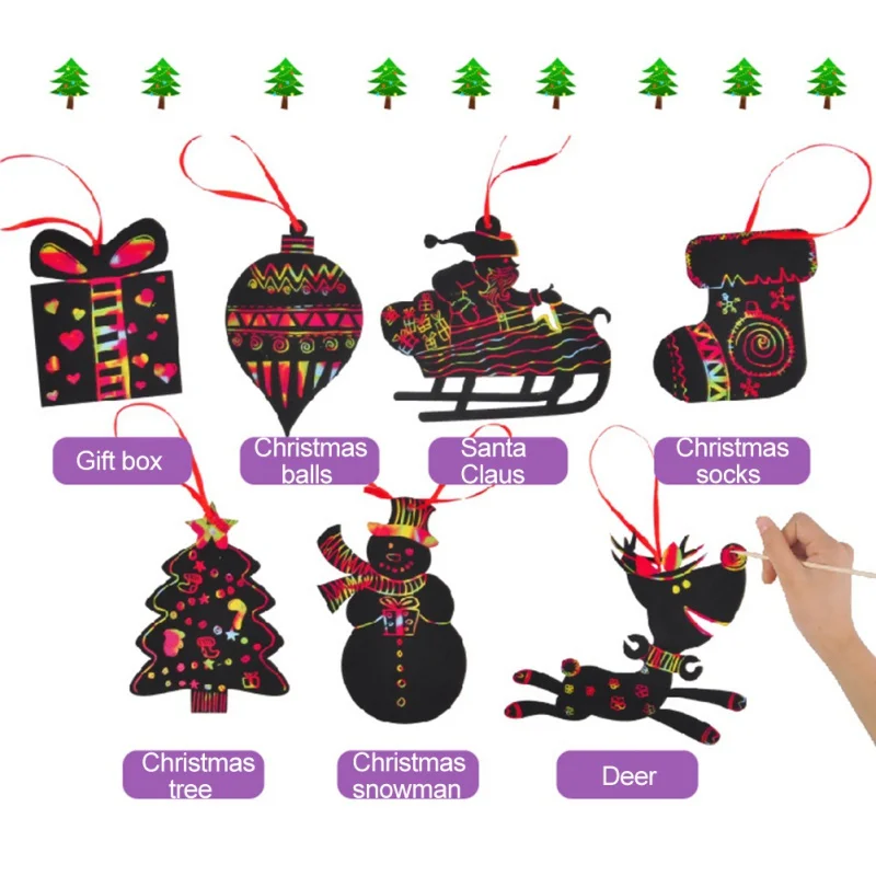 7pcs Set Scratch Card Chirldren Drawing Toy New Year Scratch Art