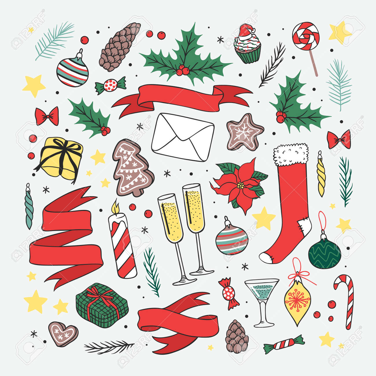 Vintage Card Set With Hand Drawing Decor Holiday Stock