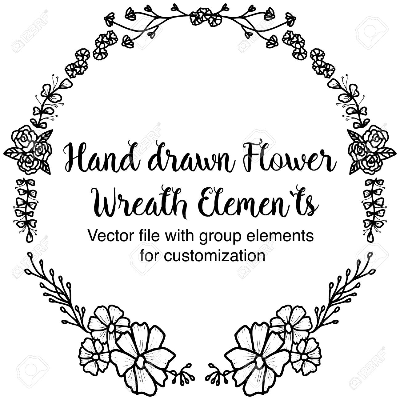 Hand Drawn Blooming Flowers Wreath Vector File Hand Made Flowers