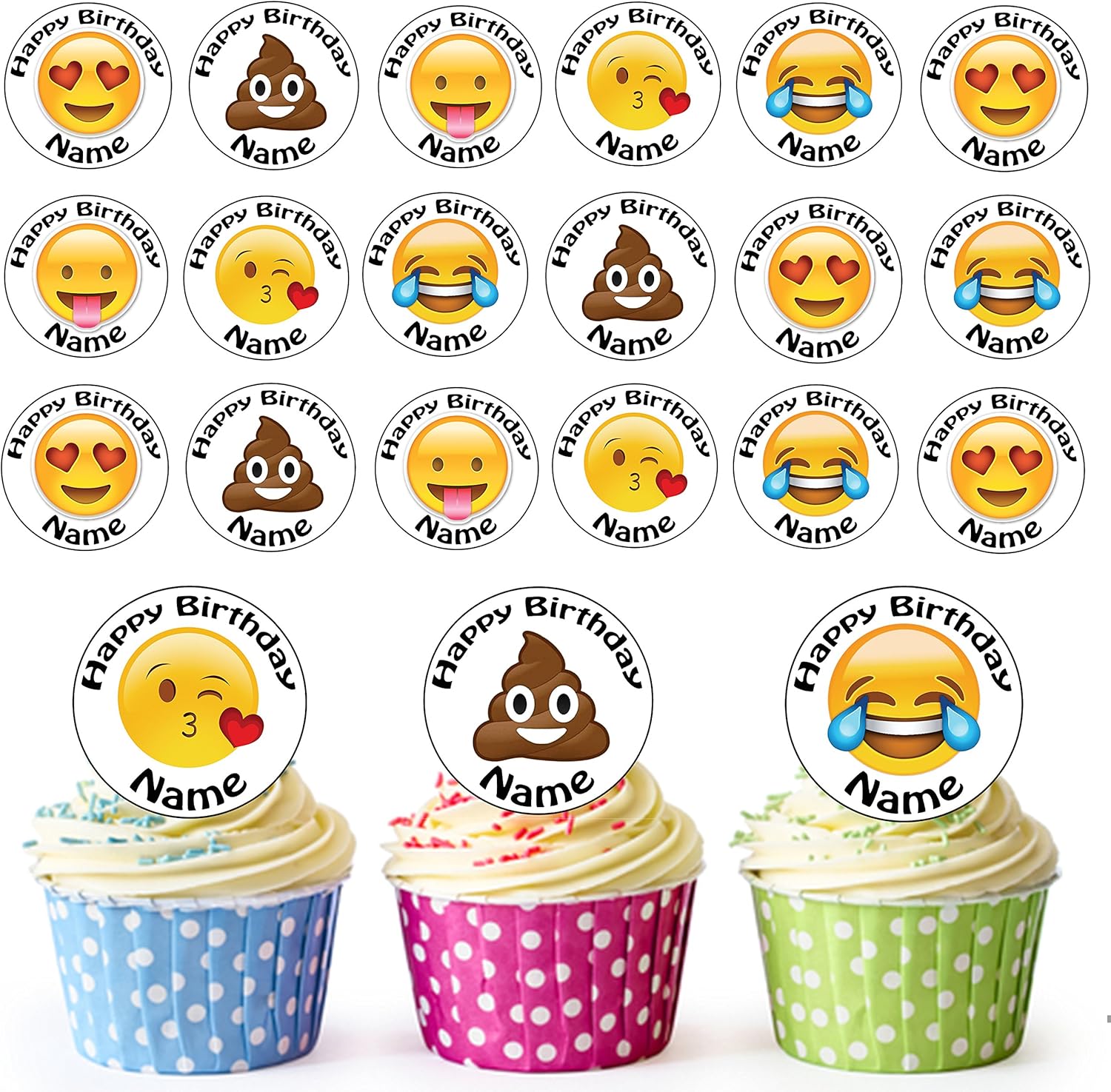 Emoji Face Mix 24 Personalised Edible Cupcake Toppers Birthday