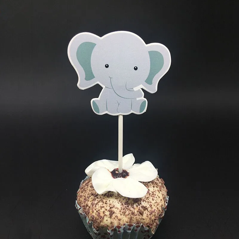 10pcs Lot Cute Little Elephant Theme Party Cupcake Toppers For