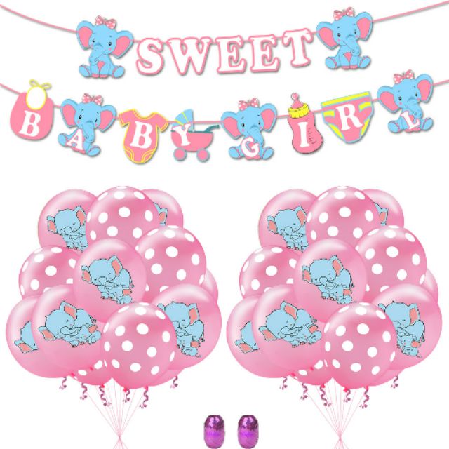 Baby Elephant Latex Balloon Banner Theme Party Set Boy Girl
