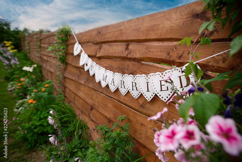 White Wooden Fence Decorated Wedding Stock Photo Edit Now 1067255534