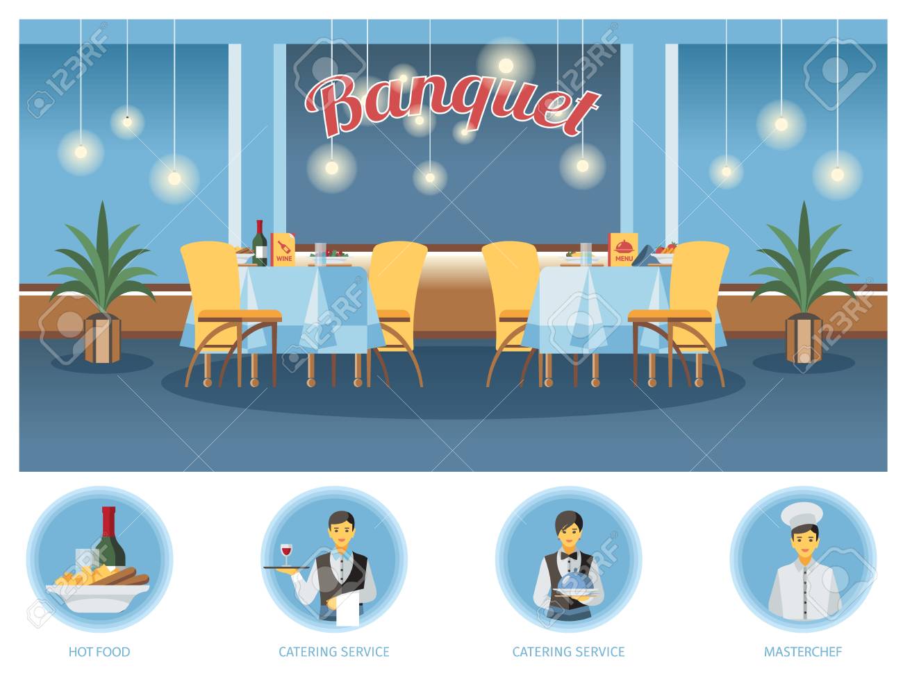 Banquet Room Hall Flat Illustration Restaurant Event Center