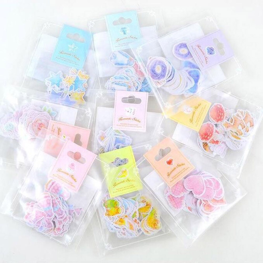 45 Pcs Box Cute Kawaii Girl Papers Stickers Flakes Romantic Love
