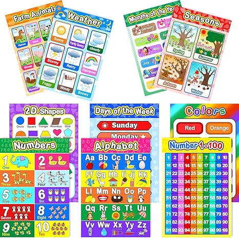 Amazon Com 4 Pieces Laminated Educational Preschool Posters For