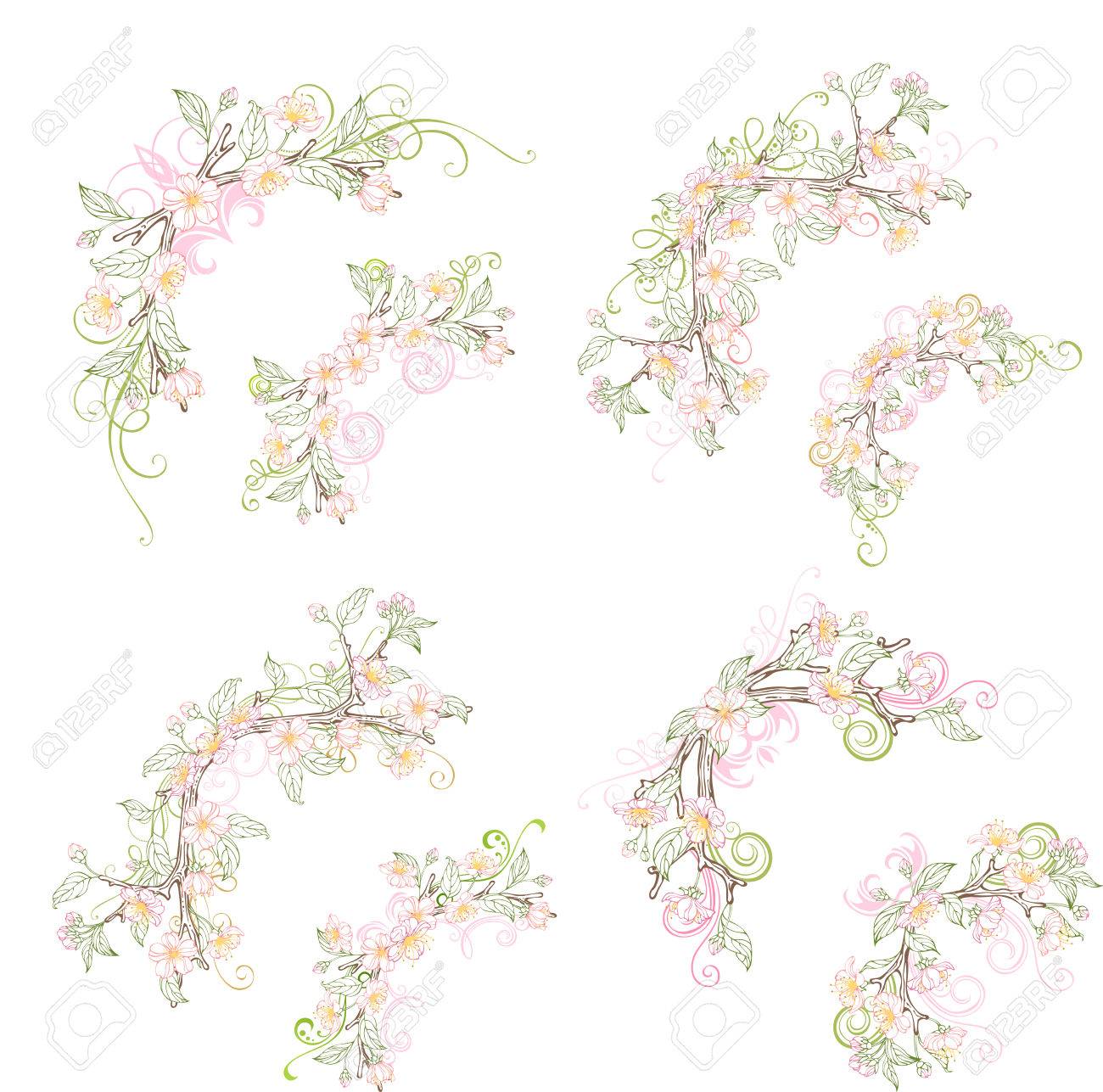 Set Of Decorative Calligraphic Floral Elements Vintage Flower