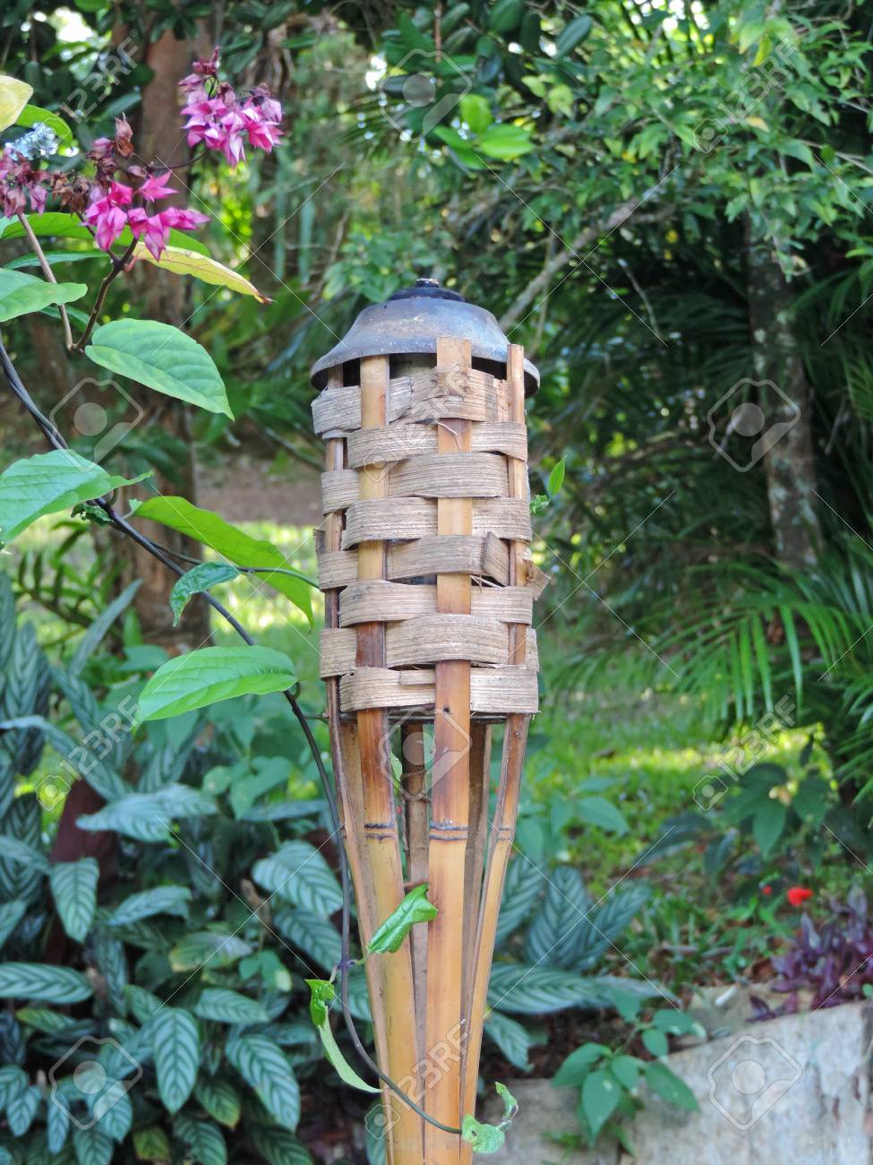 Rustic Torch Made Of Bamboo For Garden Decoration Stock Photo
