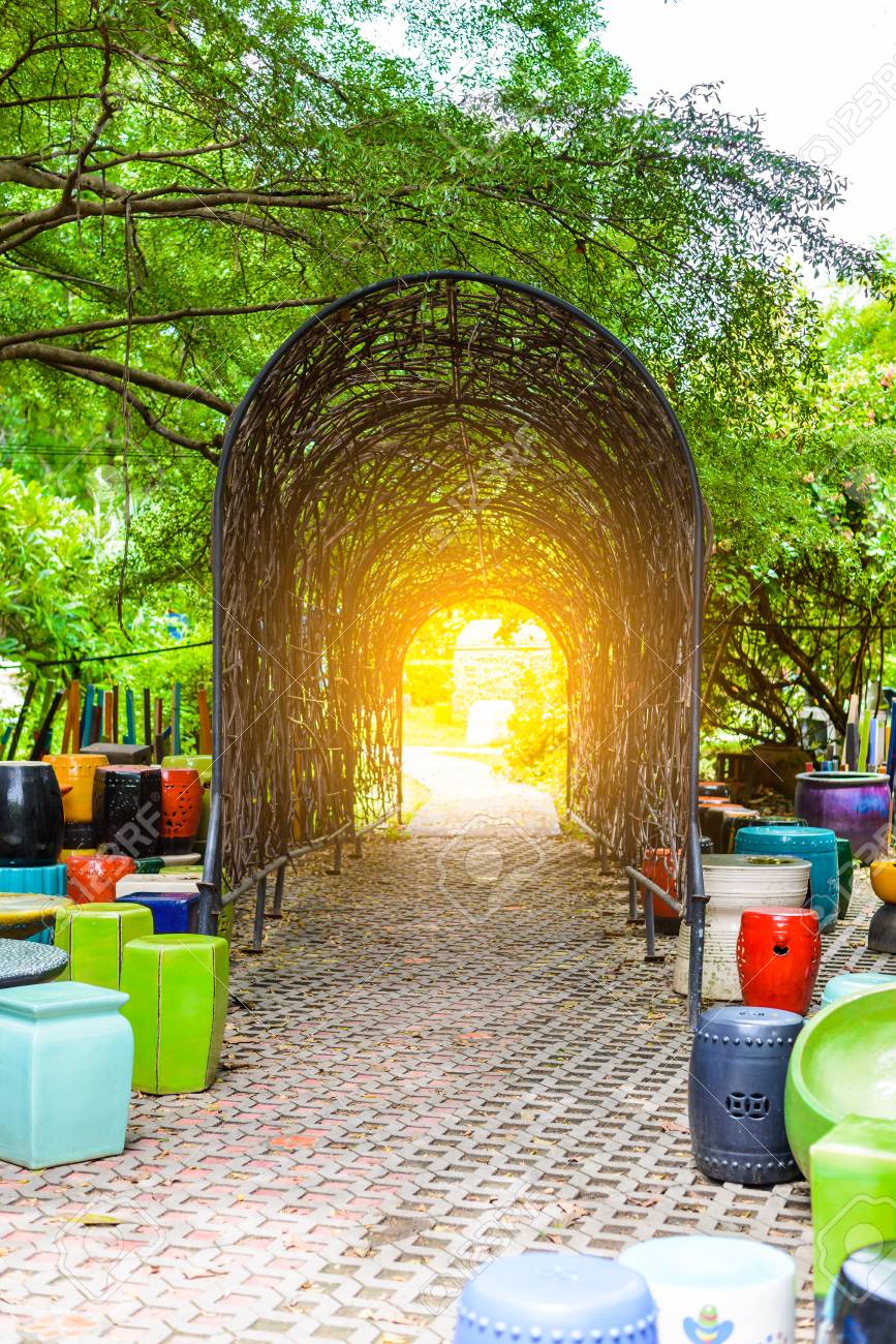 Bamboo Tunnel Structure In The Park And Use For Garden Decoration