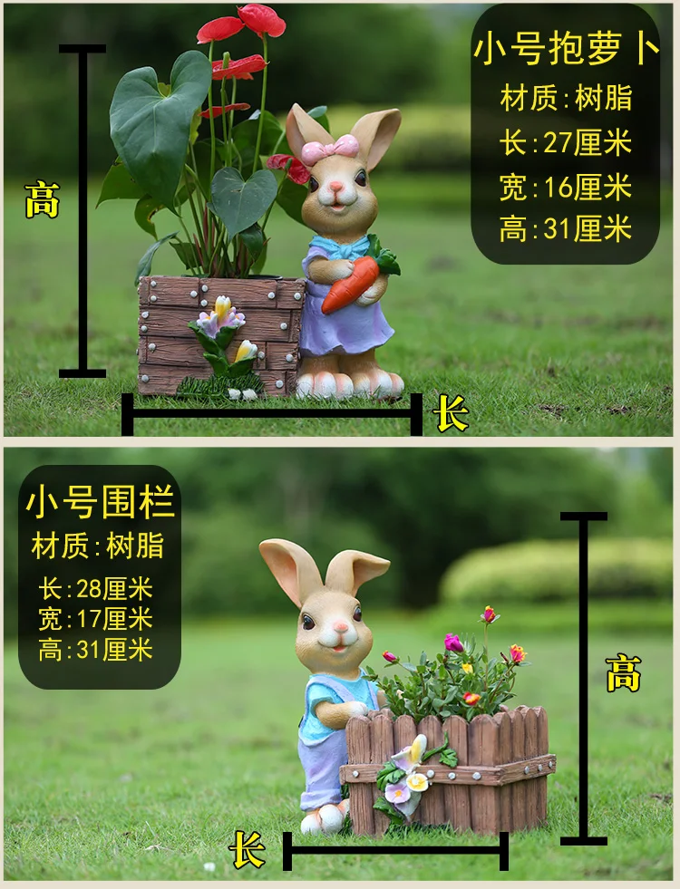 Rustic Artificial Animal Sculpture Resin Rabbits Craft Outdoor