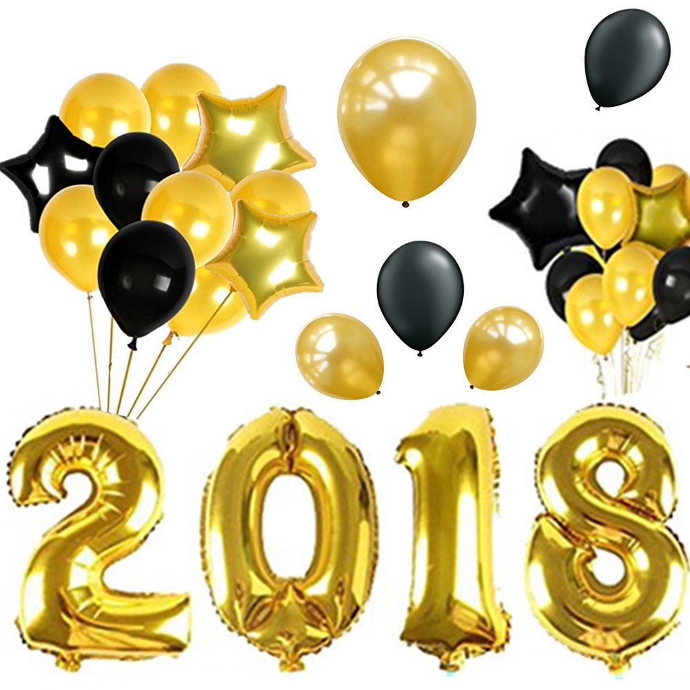 Happy New Year Banner Decorations Gold 2018 Balloons Gold Stars
