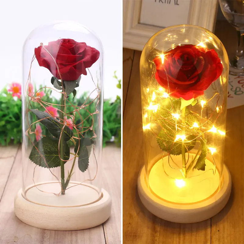 Rose Glass Cover Forever Rose Flower Restaurant Hotel Flashing Led