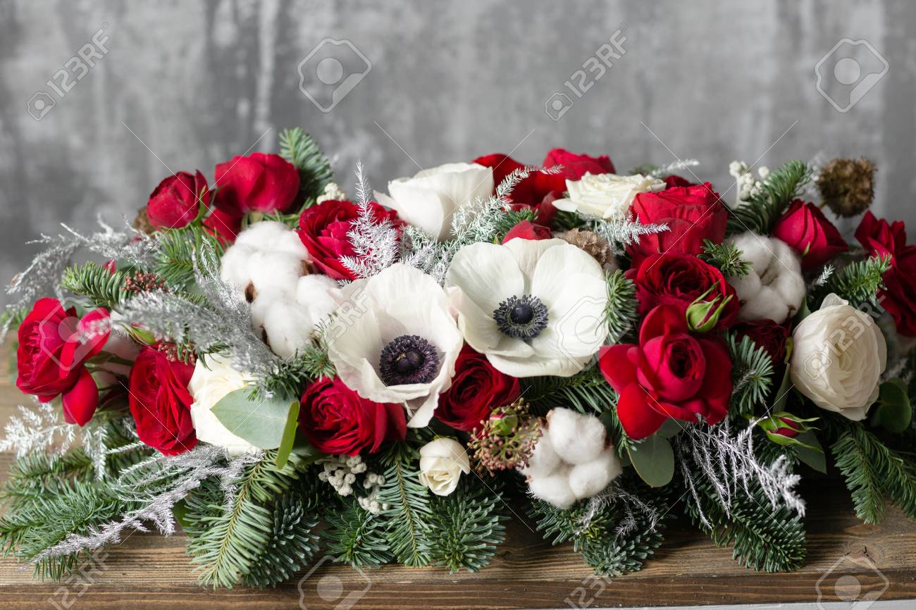 Winter Decor The Composition Of The Branches Nobilis And Fresh