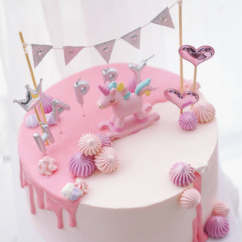 Love Birthday Cake Decoration Crown Cute Pink Blue Unicorn Doll