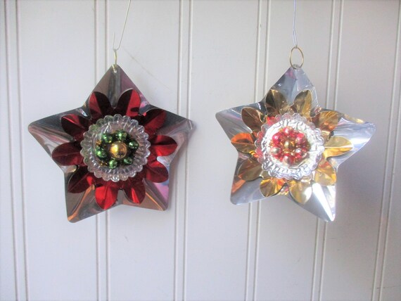 2 Foil Star Christmas Ornaments Upcycled Foil Reflector Etsy