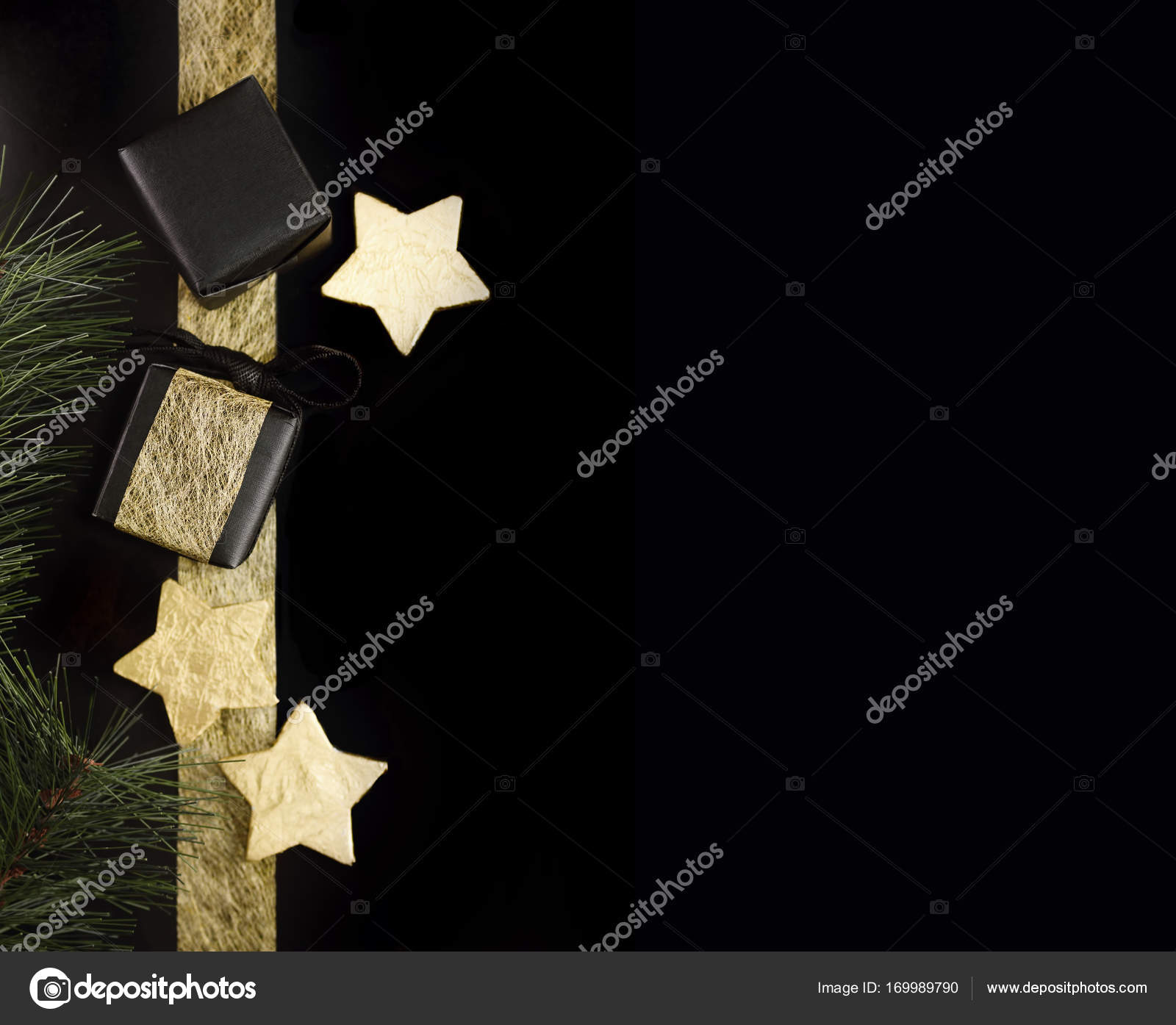 Black And Gold Christmas Gifts With Foil Stars On Dark Background