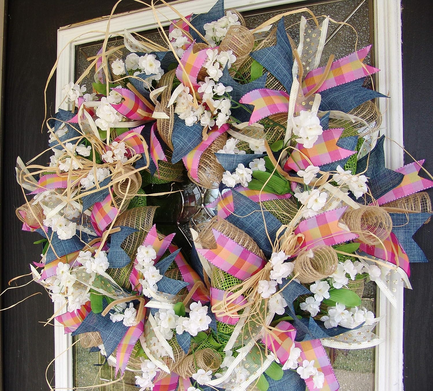 Amazon Com Country Farmhouse Spring Deco Mesh Front Door Wreath