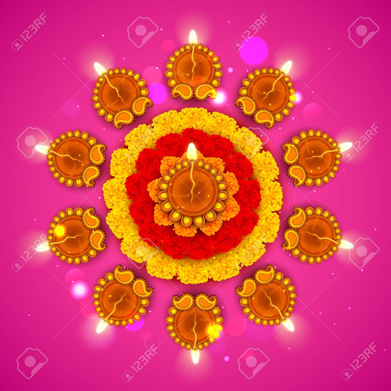 Illustration Of Decorated Diwali Diya On Flower Rangoli Royalty