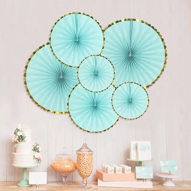 Online Shop 6pcs Set Blue Paper Fan In Baptism Party Diy Flower