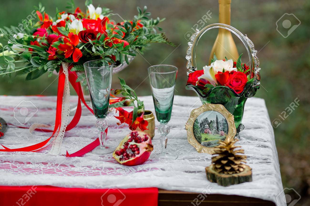 Decoration De Mariage Avec Des Lunettes Vertes Grenade Fleurs D