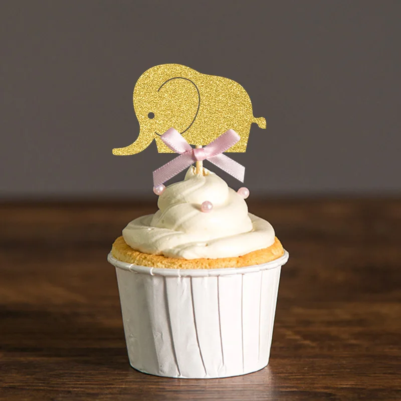 Elephant Cupcake Toppers Silver Blue Gold Pink Baby Shower Boy