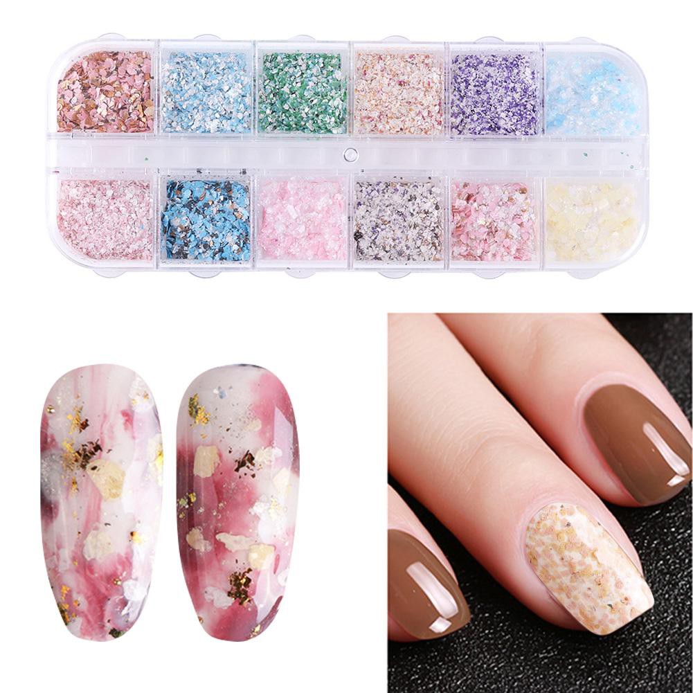 12 Grid Nail Glitter Sequins Marble 3d Flakes Gel Polish Nail Art