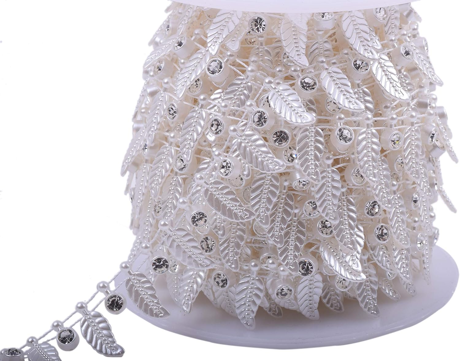 Amazon Com Kaoyoo 10 Yards New Feather Shaped With Rhinestone