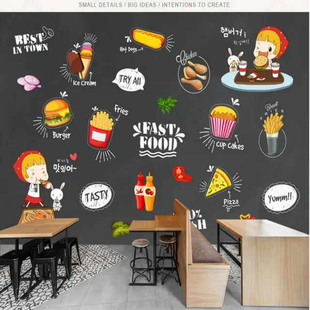 Custom 3d Non Woven Wallpaper For Western Food Shop Blackboard