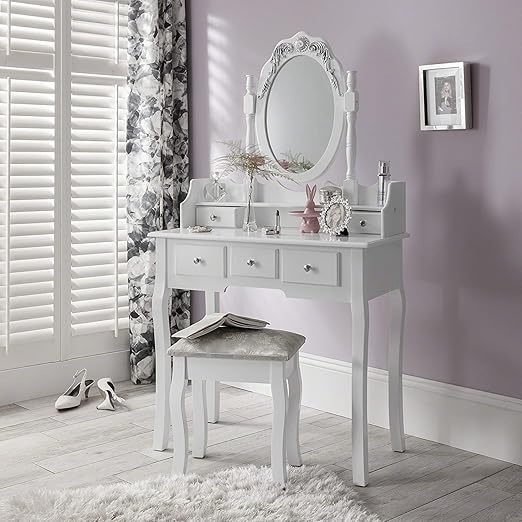 Meerveil Coiffeuse Avec Tabouret Blanche Mirroir Bois Femme Table