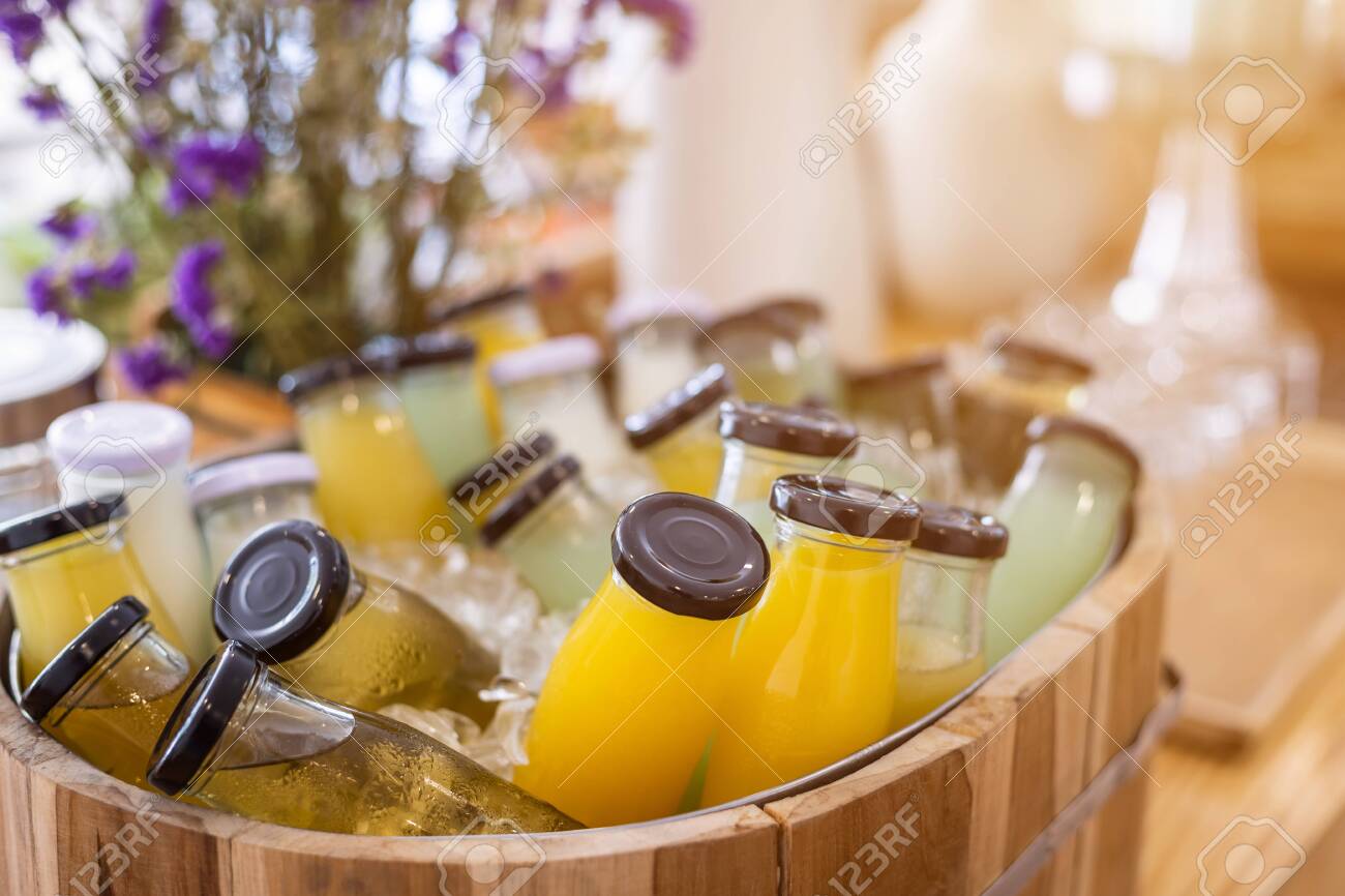 Breakfast Buffet Line Organic Raw Put In Juice Drink Bottle A