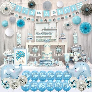 Amazon Com Ajworld Blue Elephant Baby Shower Decorations For Boy