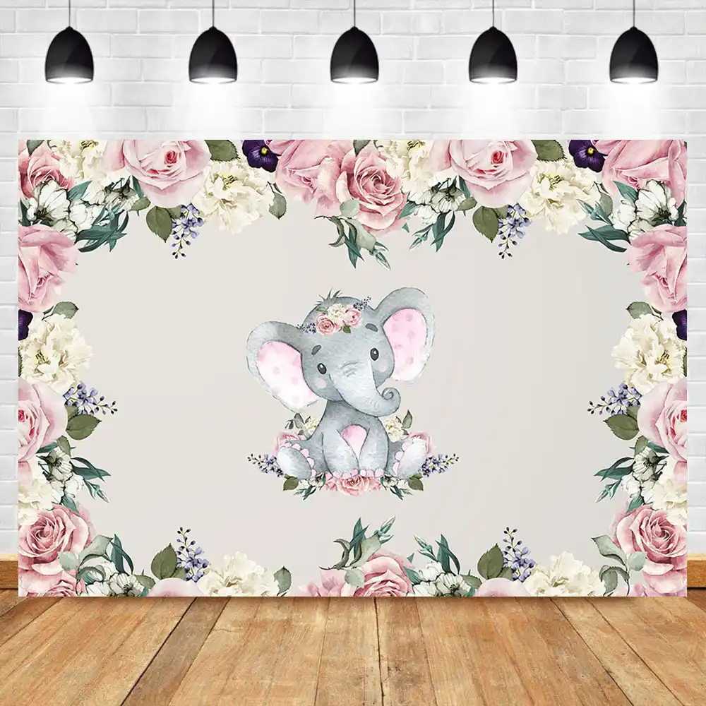 Neoback Elephant Baby Shower Backdrop Watercolor Pink Rose Photo
