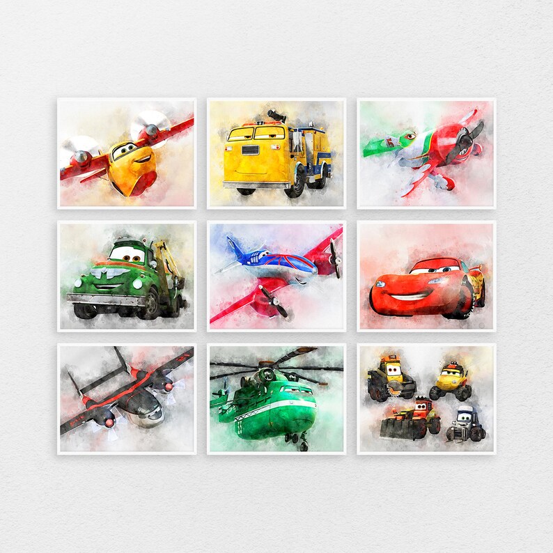 Disney Planes Print Set Of 9 Disney Cars Decor Nursery Wall Etsy