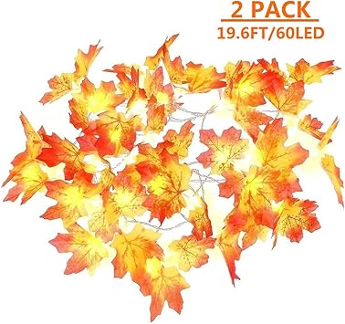 Maoyue Fall Decorations 2 Pack Lighted Fall Garland 19 6 Ft 60 Led