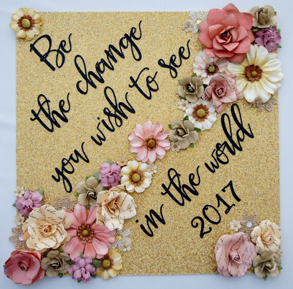 Graduation Topper Decoration Be The Change Flower Glitter Etsy