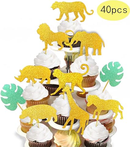 Amazon Com Alissar 40 Pack Glitter Safari Jungle Animal Cupcake