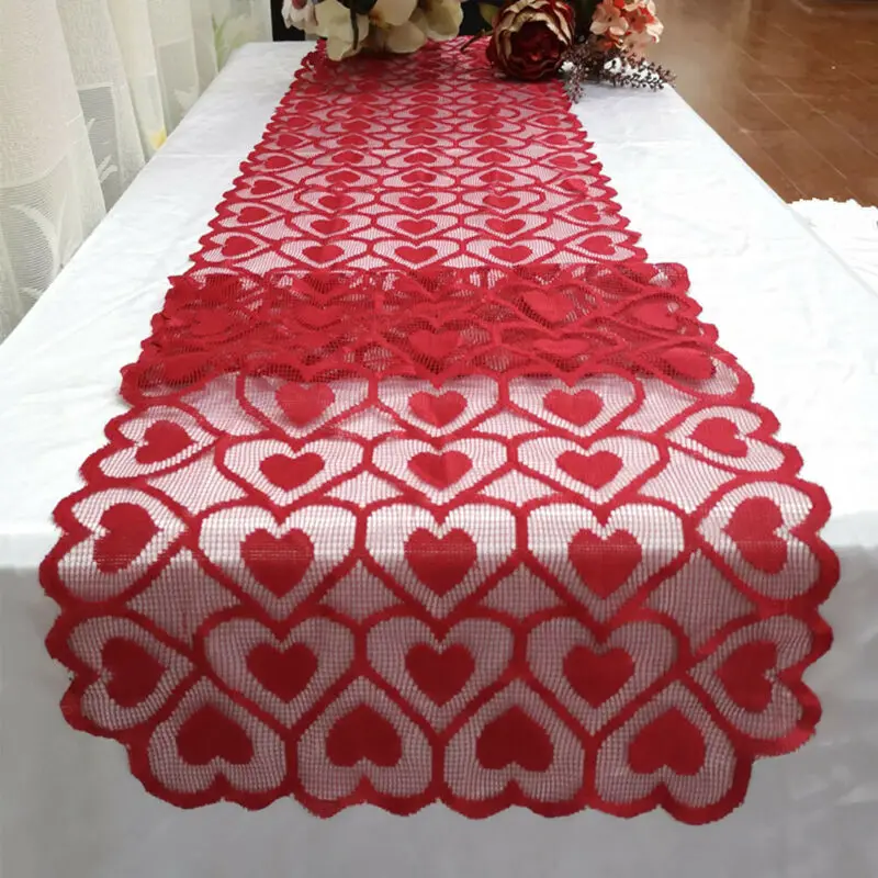 Valentine S Day Lace Table Runner Red Heart Love Wedding Party
