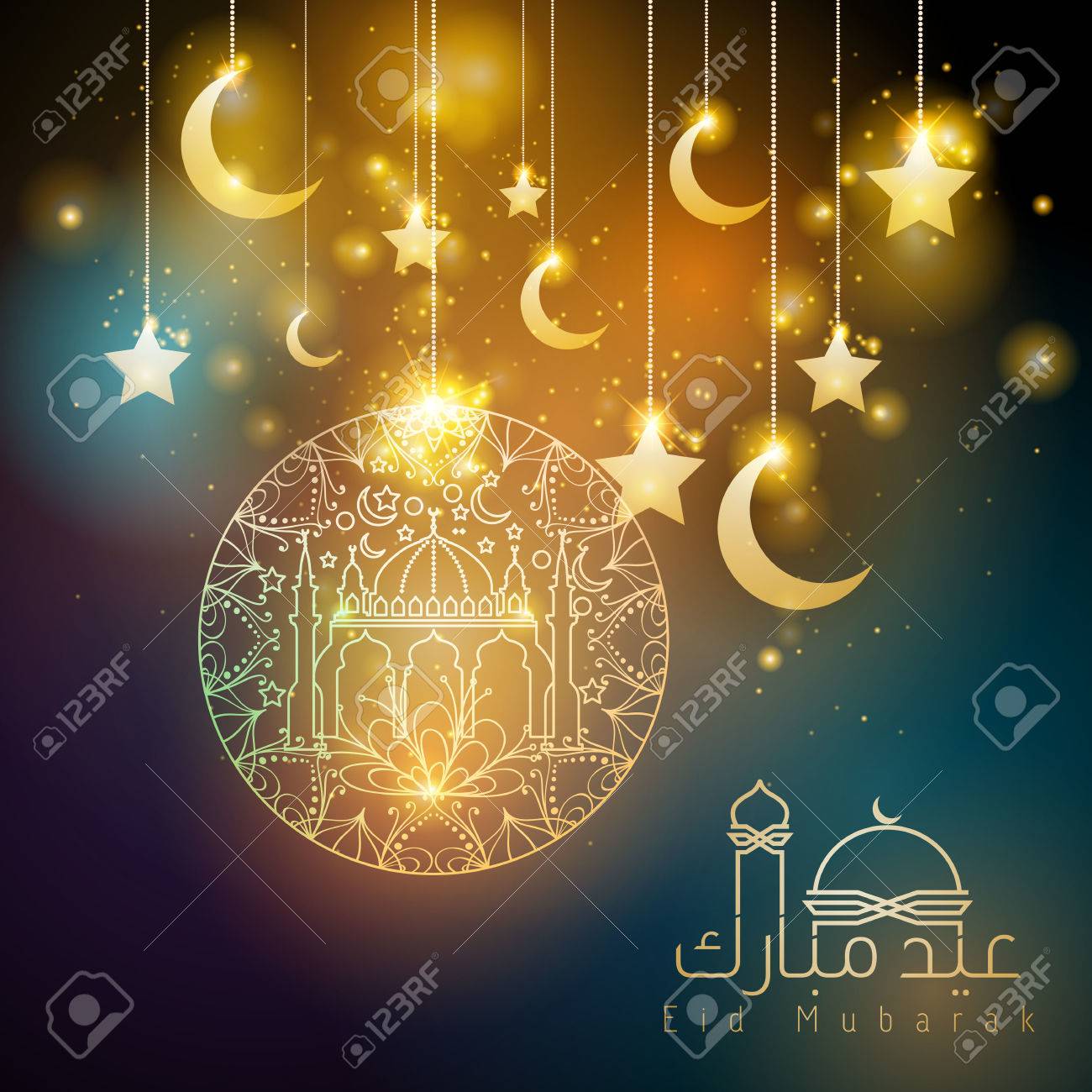 Eid Mubarak Greeting Card Design In Islamic Decoration Stock