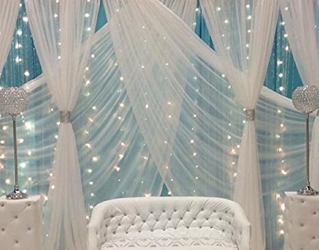 Fabric decoration for events. Those beautiful fabric ceilings or large fluffy bows attached to the backs of party chairs are all created by decorating fabric available at shindigz. Did not think of making a chandelier out of beads. We offer beautiful sparkle tulle for creating adorable no sew table skirts and more.