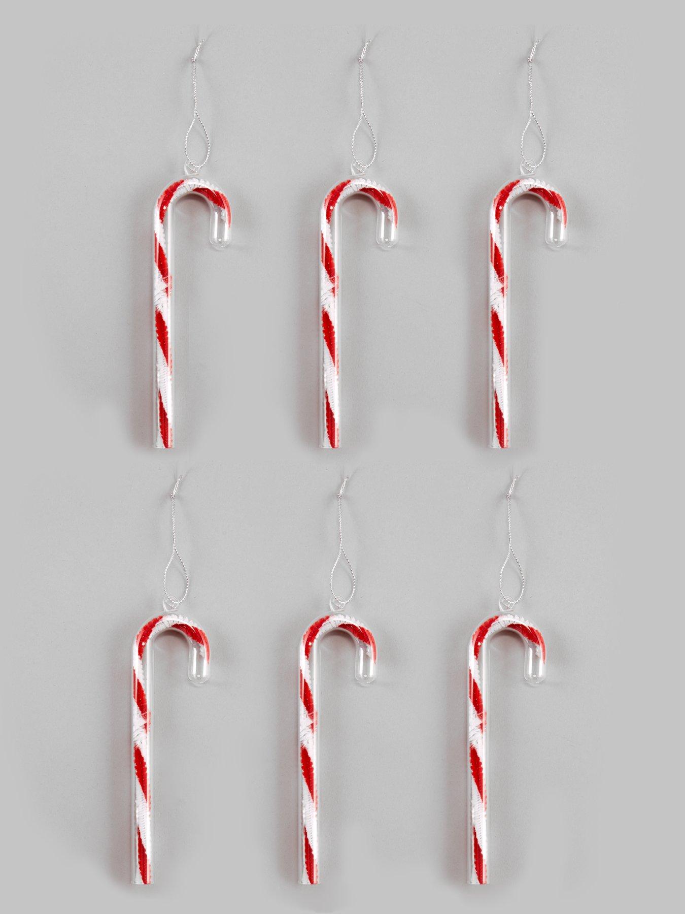 Set Of 6 Glass Candy Cane Christmas Tree Decorations Very Co Uk