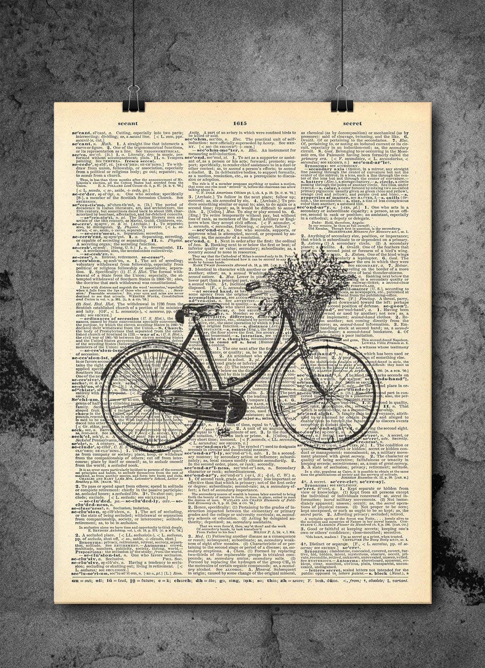 Amazon Com Vintage Flower Bicycle Vintage Dictionary Print 8x10