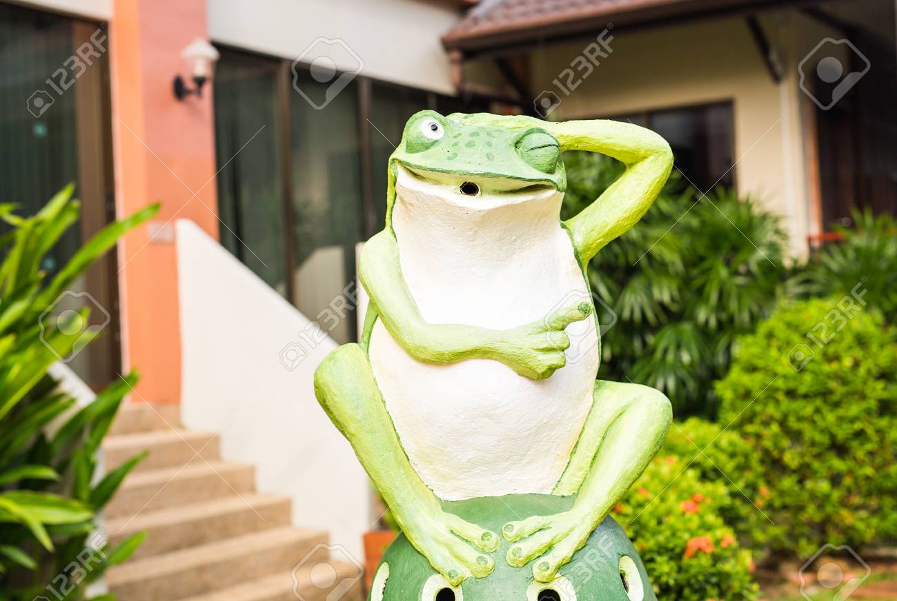 Outdoor Garden Decoration Statue Green Funny Frog Stock Photo