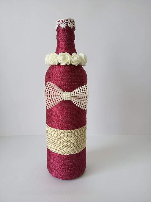 Wine Bottle Decoration With Thread For Valentines Day