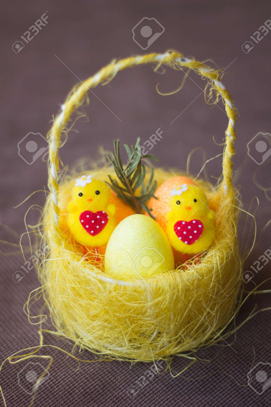 Little Toy Easter Chickens Happy Easter Holiday Decorations