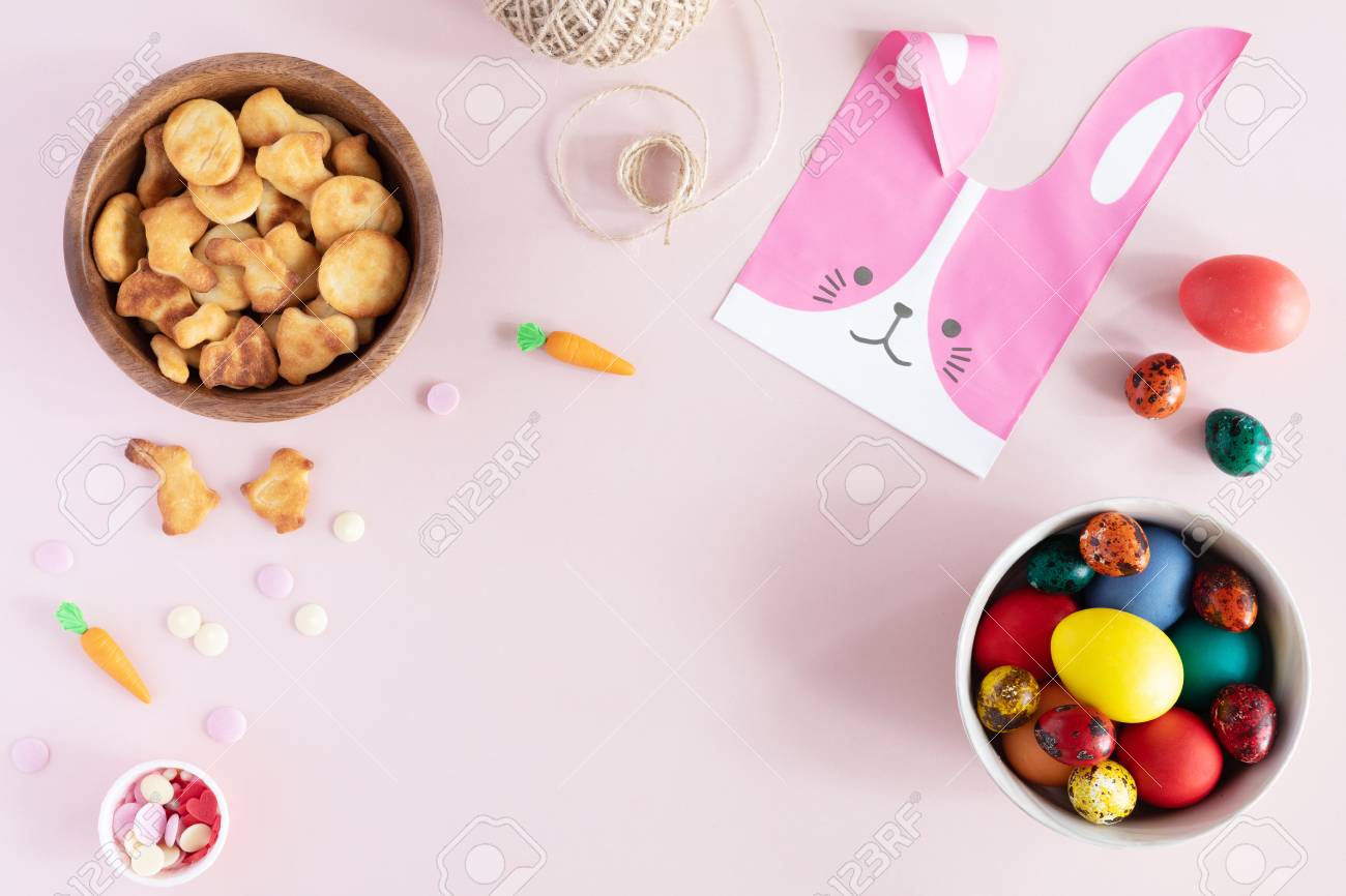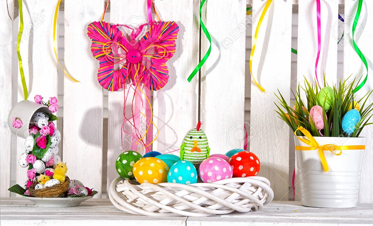 Easter Holiday Concept With Easter Eggs And Bunny Decorations Top